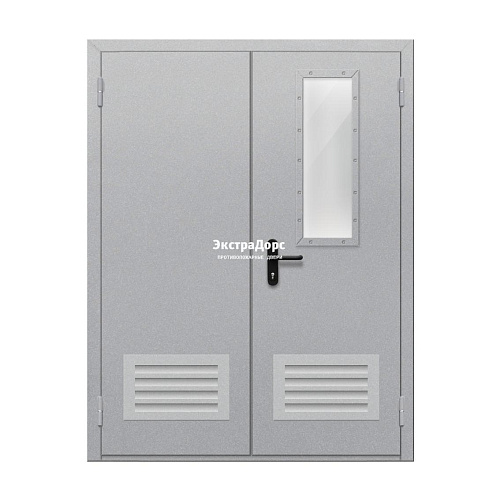 Противопожарная дверь EI 30 ДО-02-EI-30 полуторная остеклённая с иллюминатором и решёткой