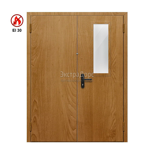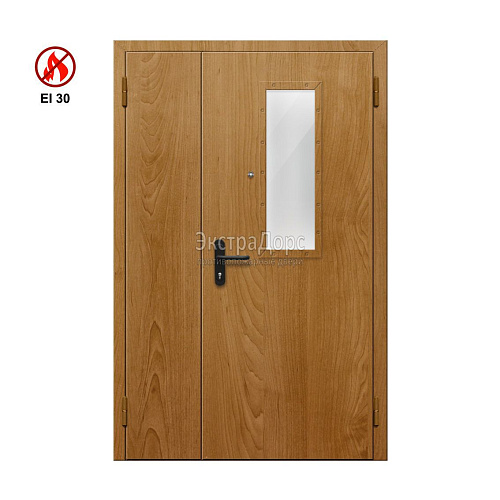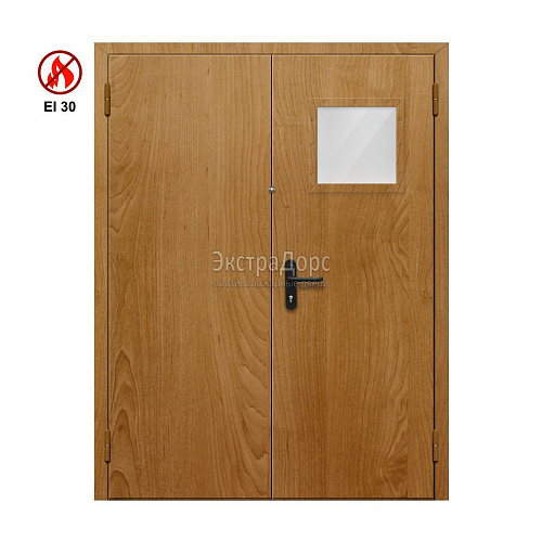 Противопожарная дверь EI 30 ДОП-02-EI30 ДП11 двупольная остекленная с МДФ с прямоугольным окном
