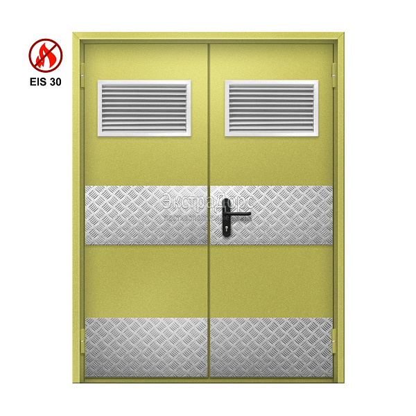 Двухстворчатая огнеупорная дверь EI 30 ДГ-02-EI30 ДП83 двупольная глухая с решеткой в Москве