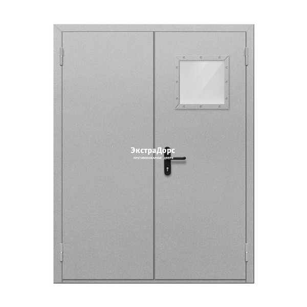 Двупольная огнеупорная дверь EI 30 ДО-02-EI-30 двупольная остеклённая с квадратным окном в Москве