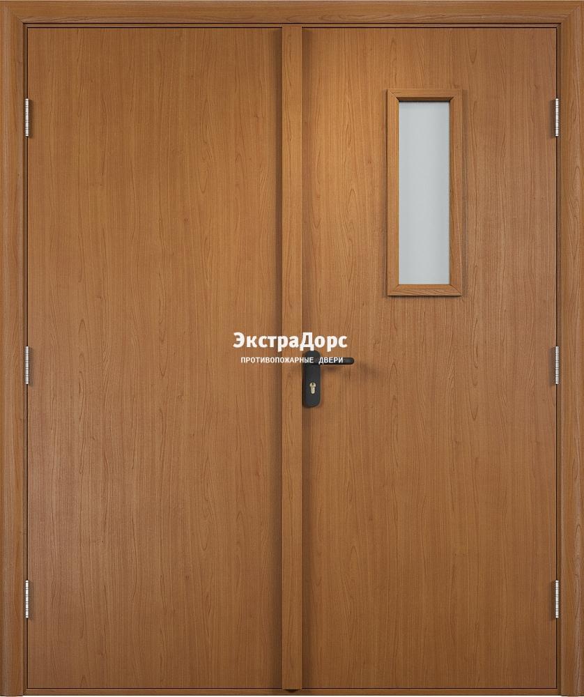 Двупольная противопожарная дверь ДМП-01-30 двухстворчатая со стеклом дуб в Москве