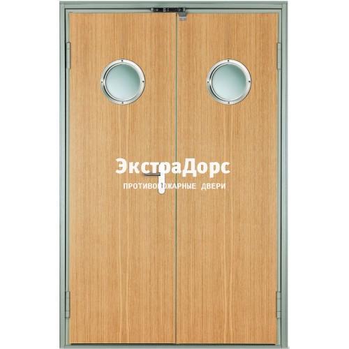 Противопожарная дверь двухстворчатая с мдф и иллюминаторами