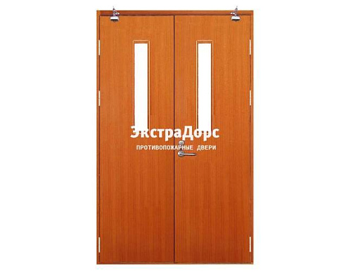 Противопожарная дверь с мдф и остеклением двухстворчатая