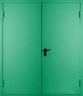 Противопожарная дверь с шумоизоляцией двупольная зеленого цвета в Москве