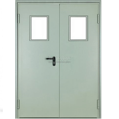 Двупольная огнеупорная дверь EI 60 двустворчатая с выпадающим порогом и стеклом