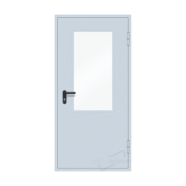 Противопожарная дверь EI 90 серая со стеклом c выпадающим порогом
