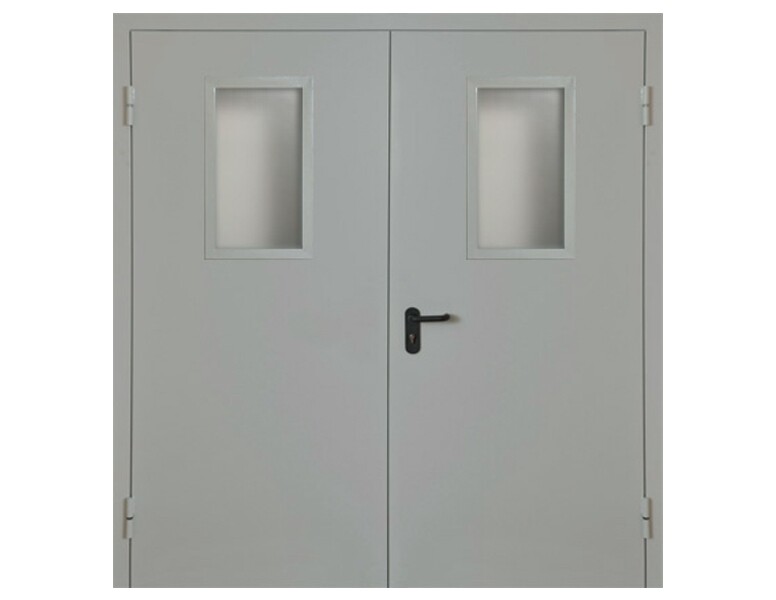 Противопожарная дверь 1 типа двупольная c выпадающим порогом с остеклением в Москве