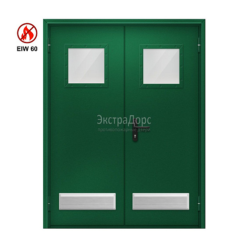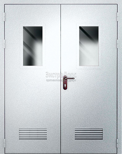 Противопожарная дверь с порошковым напылением EI 60 ДГ-02-EI-60 полуторная глухая с решёткой