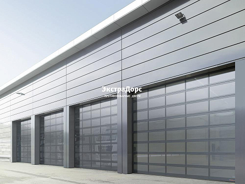 Подъемные промышленные противопожарные ворота с окнами с порошковой окраской