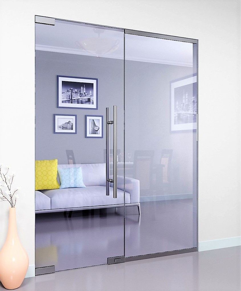 Противопожарная безрамная дверь со стеклом в гостиную в Москве